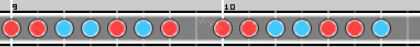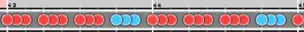 只用一个手打就不太现实了。太鼓的所有控制器(按键,触摸屏,街机鼓...)都是左右对称的,既可以用右手打红和蓝,也可以用左手打。这样一来,就可以用左手和右手交替来打的方法来对付上面的密集的组合。换手就是指决定用哪只手来打哪个音符的技术。