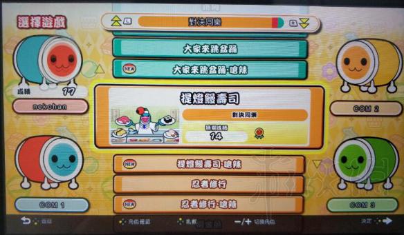 派对游戏,读作节奏天国,根本就是一个玩意,有的关卡甚至就是照搬。比如图里的鳗鱼寿司,跟火星翻译官一个玩法;忍者修行则是跟切菜忍者狗一样了。就算是激辛也没难多少,娱乐一下开开隐藏内容就好了,一个人玩的话没什么必要碰这个模式。