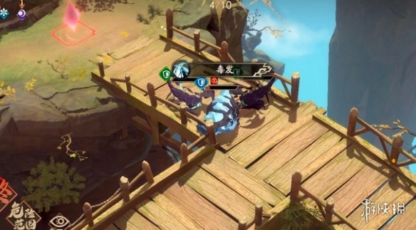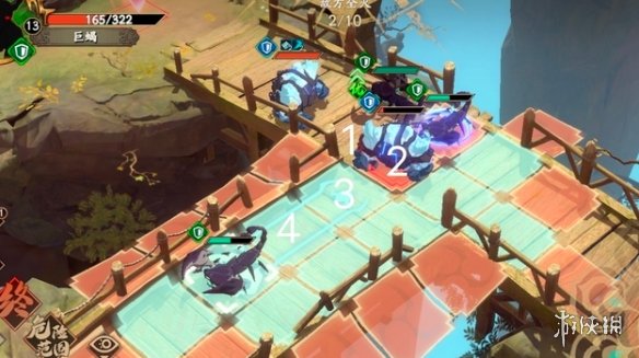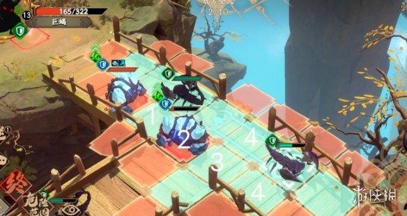 满血的蝎子走至当前位置,可以在后面回合追到逃走的刚磐兽,又可以吸引满血刚磐兽到达合适位置,并攻击自己,完成第一次施加中毒。