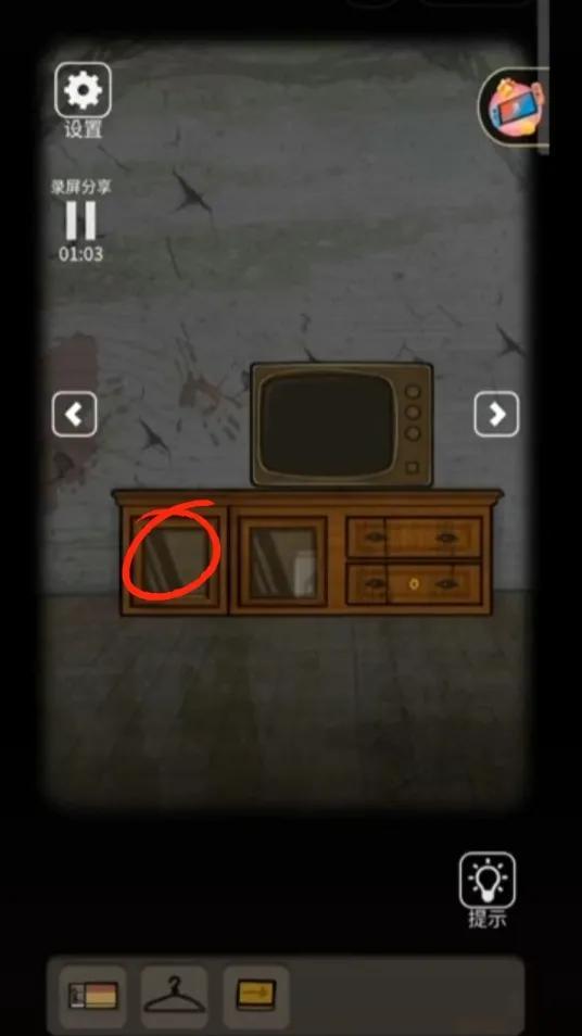 用“钥匙”打开电视机柜获得“小刀”,用“小刀”打开玻璃罐,获得“碎片”。