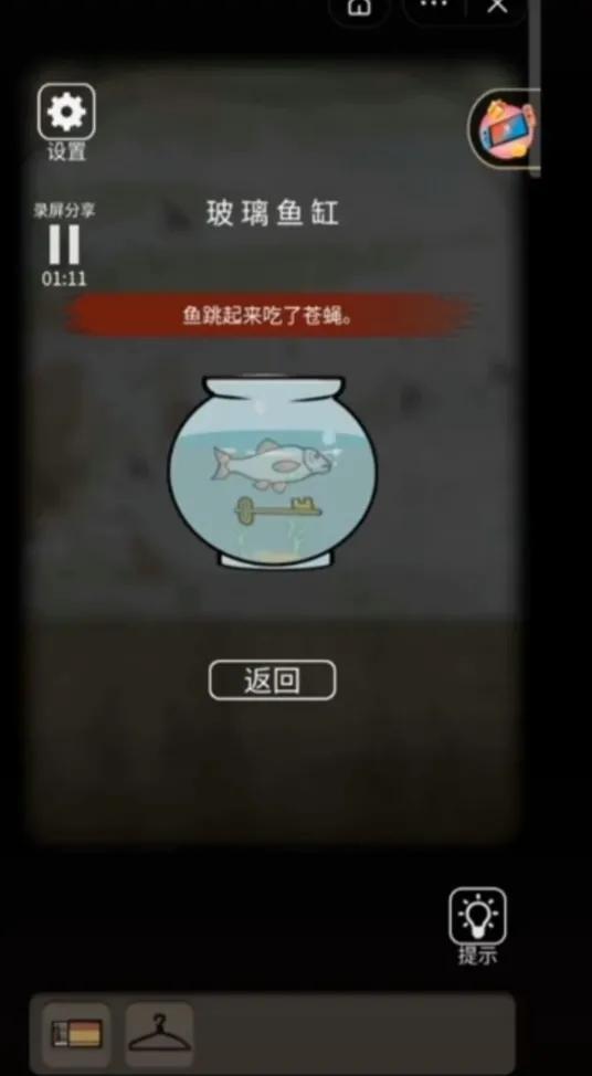 点击鱼缸,把“苍蝇”放进鱼缸,获得“钥匙”