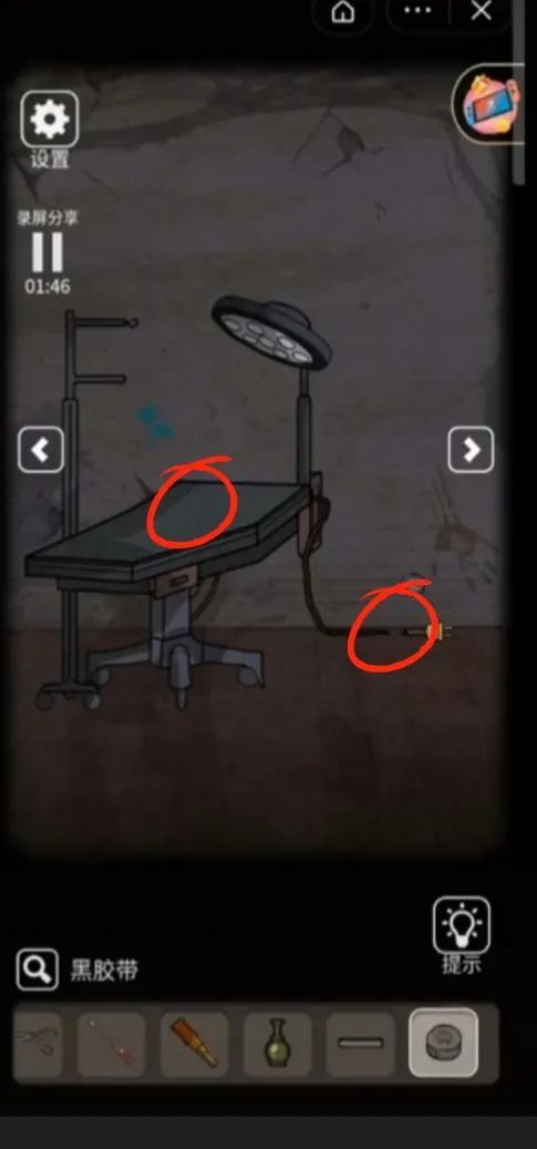用黑胶带把电源线接好,插上。查看手术台,擦干净灰尘,获得密码624。