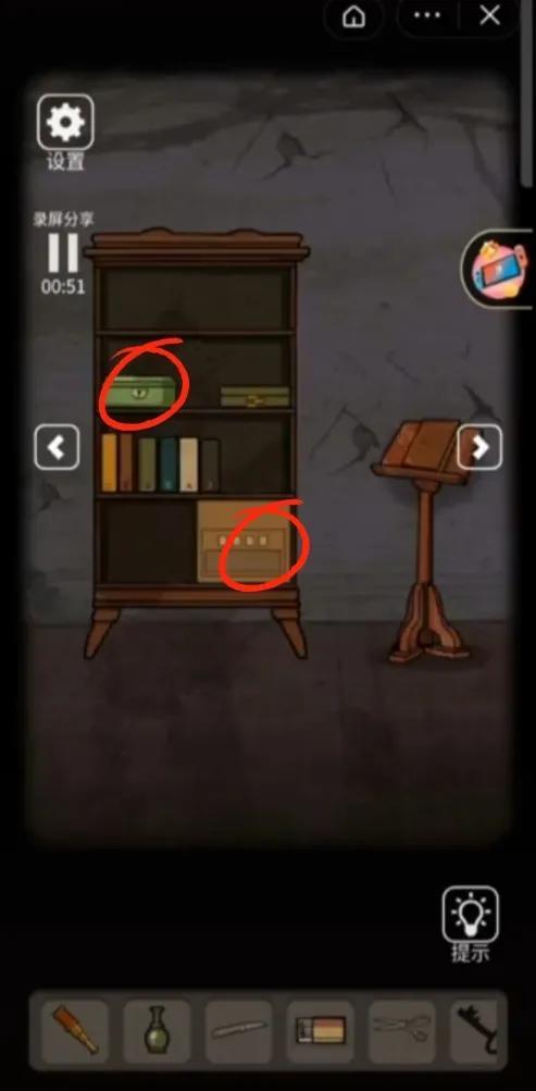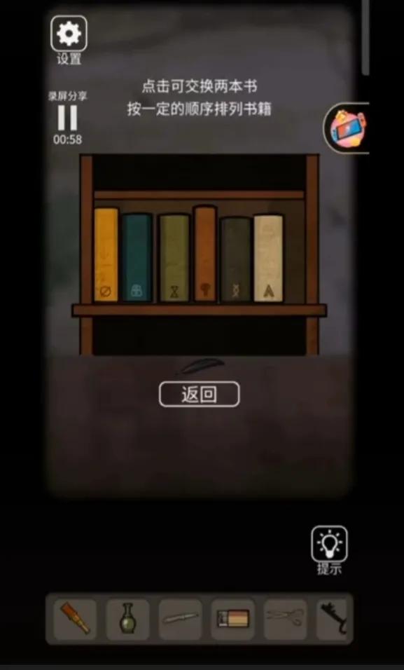 用刚得到的密码,调整书的顺序,获得密码条9527。用9527打开下方的柜子,获得“药水5”。