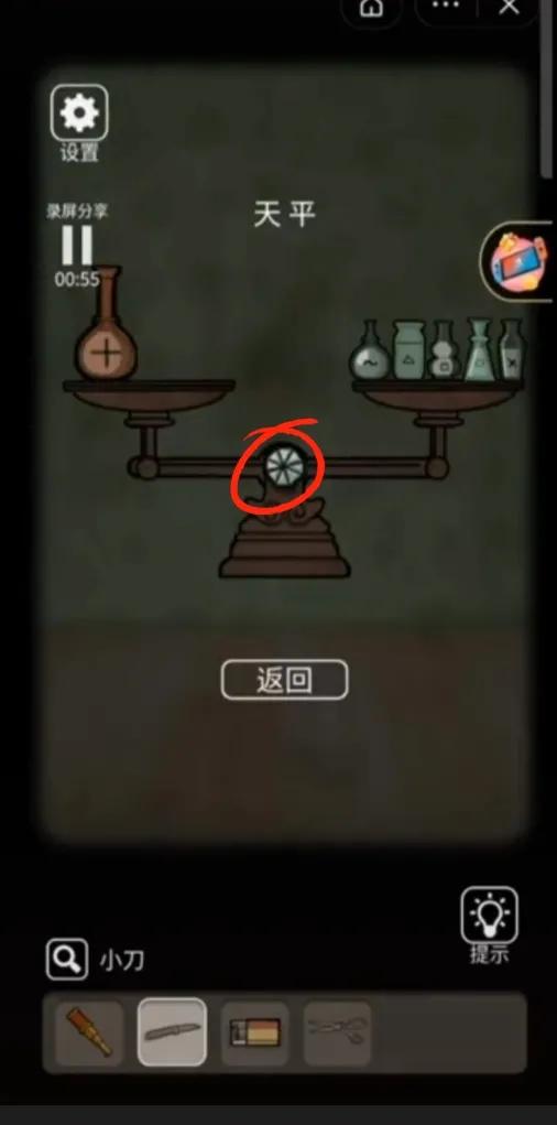 回到主卧的天平,用小刀,把天平上的宝石扣下来。