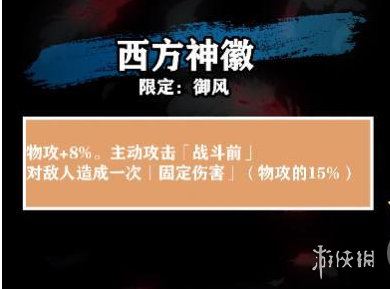 又是一件固伤类装备,不过和前面几个相比,西方神徽最大的特点是战前固伤,和梦战里的拉格纳洛克完全一样,这一点固伤最大的作用并不是打伤害,而是通过破满血来消除对面的一些被动技能或者天赋特效。