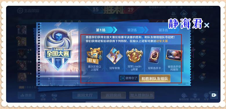 第三个奖励是冠军Loading:获得冠军后,玩家可以在loading展示自己获得的荣誉(比如获得过几冠王)。