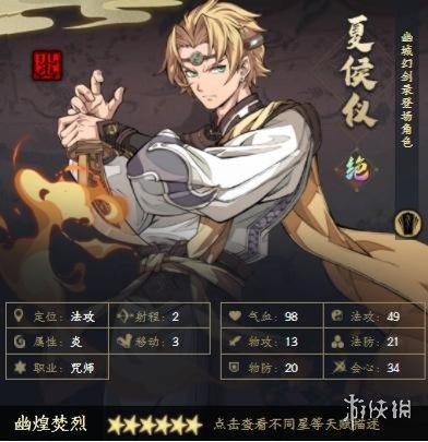 火系最强咒师,拥有强大的火系范围伤害、群体驱散、高额的单体伤害以及极强的保命能力。拥有幽城主角战阵。夏侯仪就是最好用的火系输出,可近可远。在面对最难的雷创不仅输出惊人还能提供增伤、降防。冰璃、夏侯仪、慕容璇玑组成的主角队几乎能够应对所有副本。