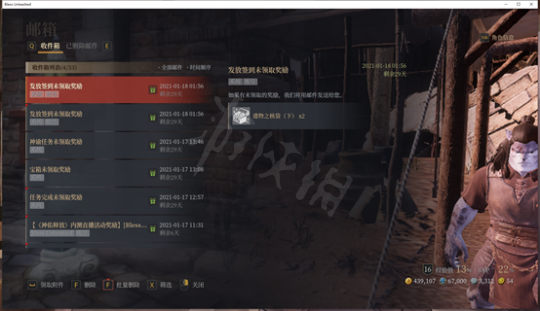 3.玩家可以在收件箱内找到自己的邮件,目前游戏刚刚上线,很多官方发放的奖励都在邮箱中,玩家领取之后可以按F批量删除不需要的邮件。