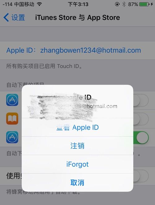 2、点击手机中【设置】里的【iTunes Store 和 App Store】,点击原有的Apple ID进行注销,然后登录新的Apple ID即可;