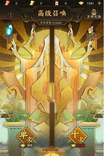 2、高级召唤卡池需要我们使用很多的召唤卷,玩家们在没有召唤卷的时候可以选择将元宝购买一定的数量人,然后进行召唤即可,目前在该卡池里面我们可以得到很多的稀有角色,不过获取稀有角色的概率只有百分之四,无双角色获取概率则是只有零点五。