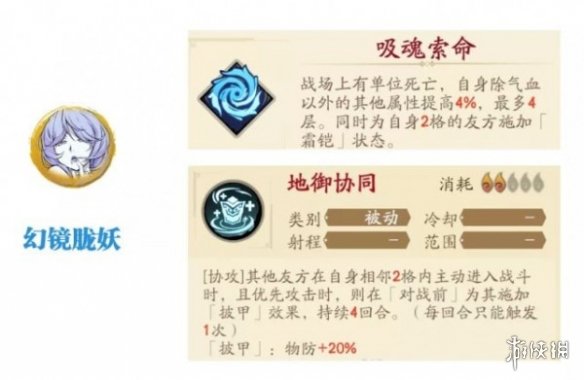 那么幻镜胧妖的定位是强攻系法师,在进攻的同时也能为身边的队友提供【霜铠】的辅助,另外在升级到40级之后幻镜胧妖还可以开启【地御协同】的加防效果,考虑到目前的火系boss大部分都是物攻的状态,这个效果在日后也会有一定的施展空间。