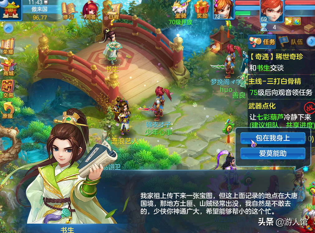 其次就是玩家设计的奇遇任务。每过一段时间,游戏都会在论坛等渠道收集玩家们的想法,以玩家们的想法为主要内容设计奇遇任务,被选中的玩家还可以获得丰富的奖励。这些奇遇任务很多都是玩家们在神武世界中的亲身经历,比如说“渔生有你”讲述了两个玩家因为游戏相识相知的故事。