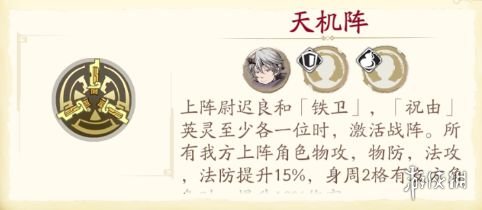 激活条件:上阵尉迟良和一名铁卫和祝由时激活战阵。