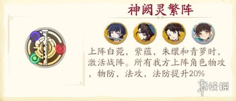 激活条件:上阵白菀,紫蕴,朱缳和青萝时,激活战阵。