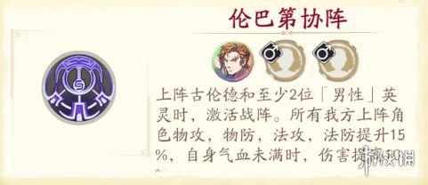激活条件:上阵古伦德与至少两名男性角色可激活战阵。