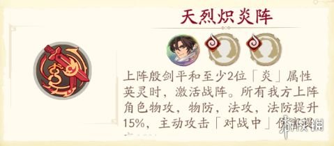 激活条件:上阵殷剑平和至少2位「炎」属性英灵时,激活战阵。