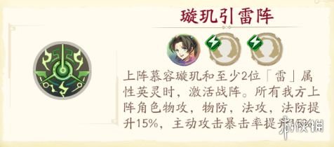 激活条件:上阵慕容璇玑和至少2位「雷」属性英灵时,激活战阵。