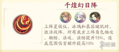 激活条件:上阵夏侯仪、冰璃、慕容璇玑时激活此战阵