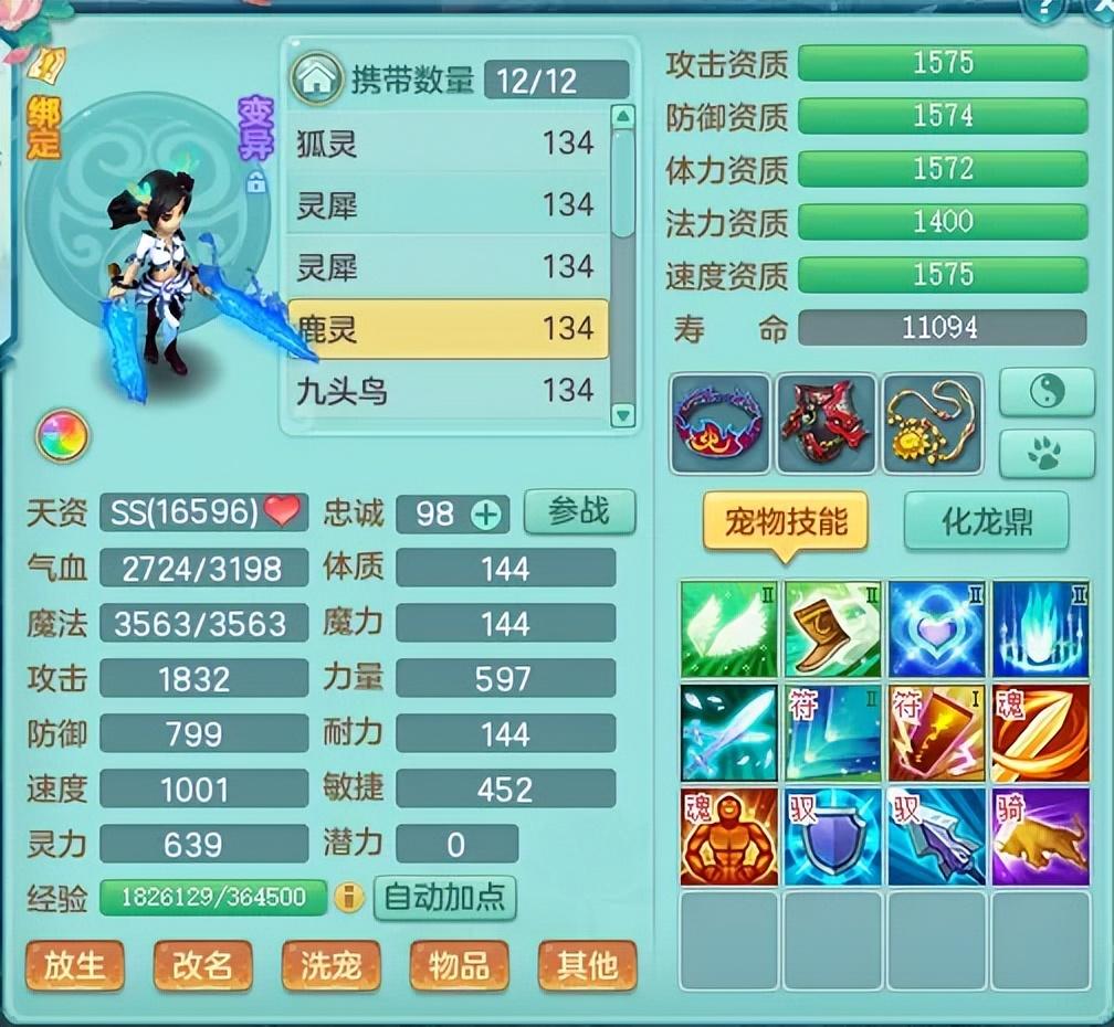 129也完全可以胜任日常冲击宠,而飞升以下的等级在没有鹿灵的情况下,洗一只弈星做冲击也是很多玩家的常用玩法,毕竟不是谁换神兽都能换到鼠剑仙。