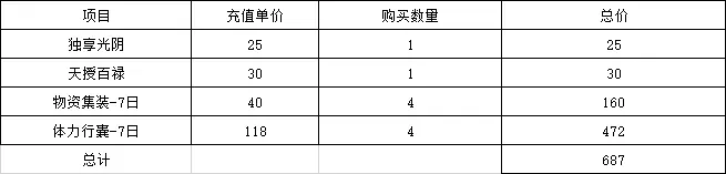 此方案按照IOS预约的月卡、礼包价格计算,如1月27日内测时有所不同,请相应的进行微调;