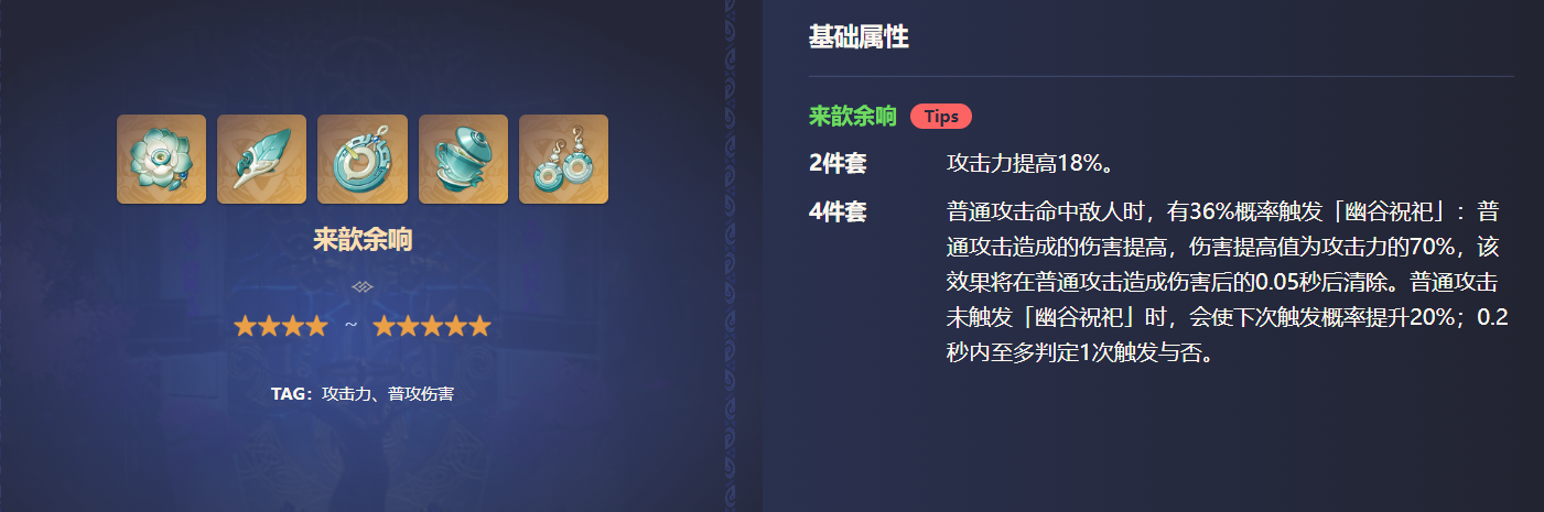 因此,在这里更推荐角斗士和水套,然后是来韵套。所以如果小伙伴们已经有一套属性较好的角斗士的话,就不用再去特别给绫人刷圣遗物了。