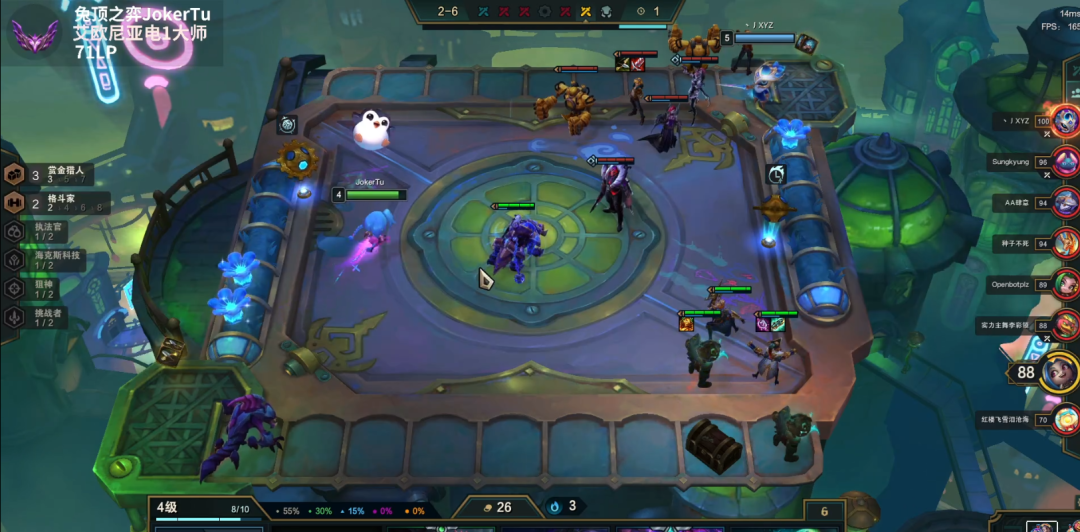 5阶段钱够有20-30搜牌就直接9人口彻底大成阵容了,然后卡着10利息一直找所有卡的两星,当然你容错和钱更多可以卡着更多的钱来找,这个前提是蔚、烈娜塔的两星更快,6格斗完美羁绊已经组成,这样保证了5阶段的无敌战力。