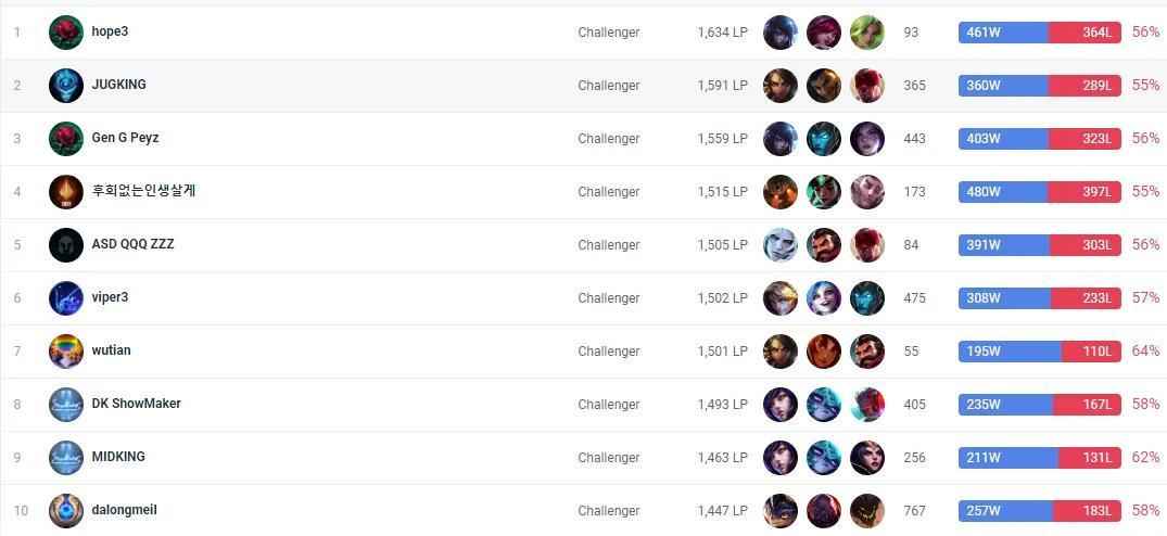 lol韩服opgg排行榜(韩服最新资讯JDG.hope登顶)