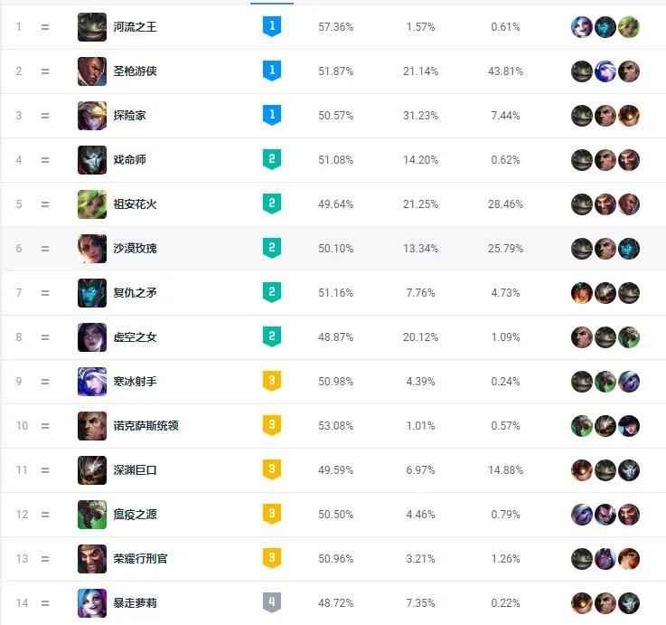 从韩服最新的下路英雄数据来看,层级第一的仍旧是卢锡安和ez这两个最近比赛上也十分热门的英雄,卢锡安配合娜美的组合基本是比赛上非ban必抢的组合。但随着厄斐琉斯以及金克丝这两个春季赛热门的大核ad的削弱,曾经的传统大核ad老鼠以及大嘴在当前版本也有了一席之地,不仅选取率上升了,胜率也上升了。老鼠甚至还登上了赛场。