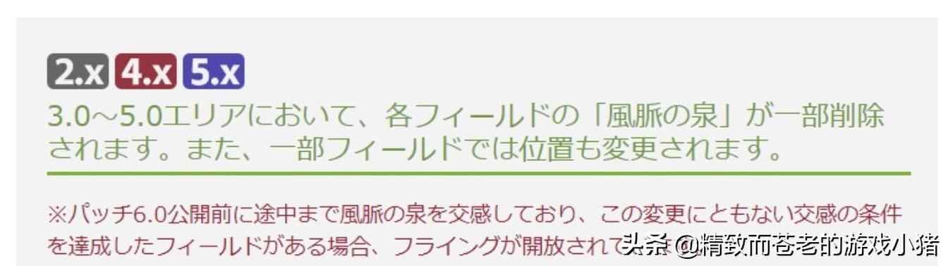 目前游戏在 3.0 至 5.0 之间的风脉之泉数量已经减少一半,原本玩家需要在一张地图探索 10 个风脉之泉位置,并且完成 5 个关联任务过后,才能在该地图中搭乘坐骑飞行。
