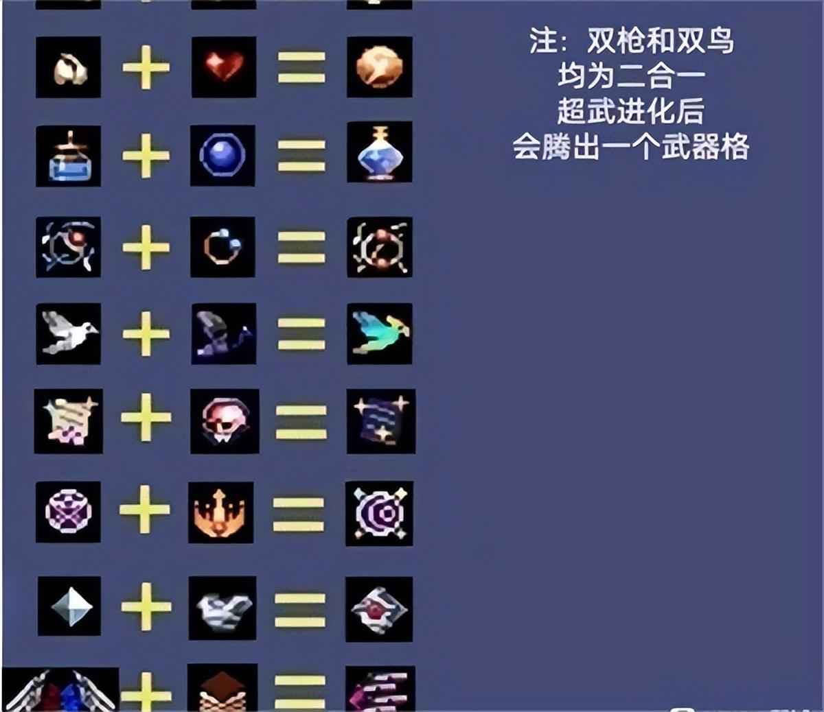 以上就是吸血鬼幸存者超武合成表最新一览,希望能够给大家带来帮助,更加轻松的获得强大的武器。