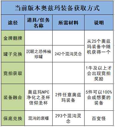 目前为止,奥兹玛装备获取共有五种途径