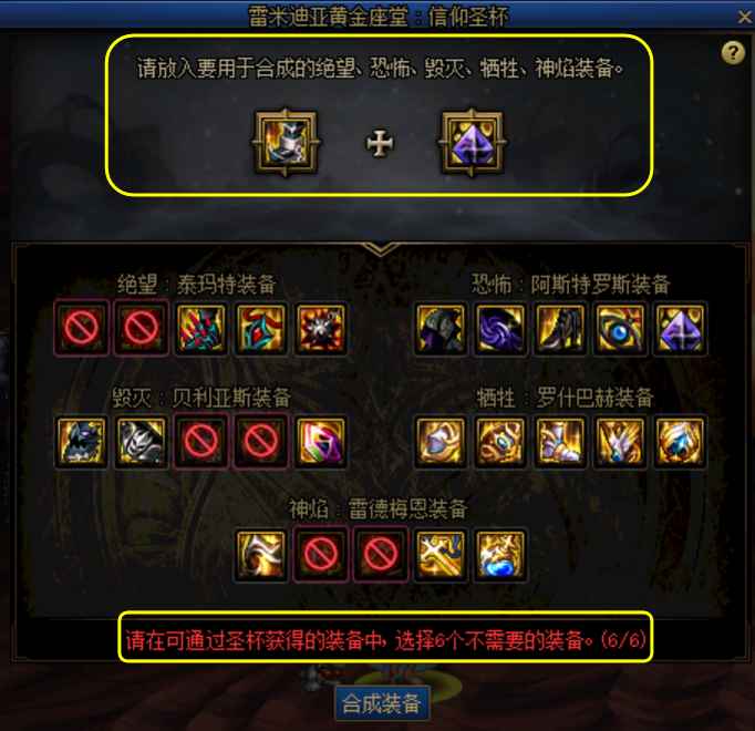 换句话说,连续合成4次,就可以ban掉24件装备,在极致脸黑的情况下,需要消耗5件奥兹玛装备,即可100%获得指定装备。
