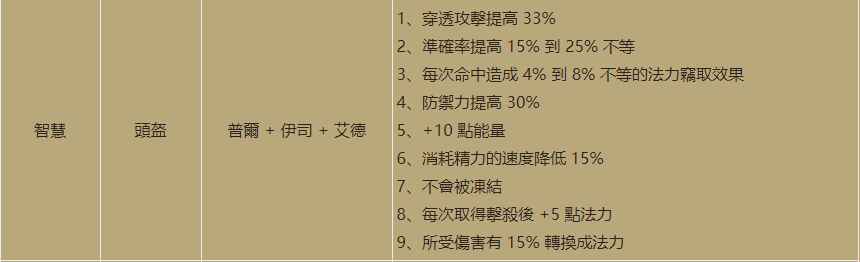 第四个符文之语是智慧,是一个头盔位置的符文之语,需要的符文是21号普尔+6号伊司+2号艾德,造价一般,最高也就只需要21号符文,有33%的穿透攻击,那基本就是为亚马逊和投掷野蛮人量身定制的了,新版本的野蛮人的投掷专精也是新增了穿透属性,不知道地位会不会稍有提升,另外还有25%的命中提升,也是亚马逊和野蛮人比较需要的属性,还有最高8%的法力窃取和5点的击杀法力恢复,基本可以解决弓马和标马的蓝耗问题,另外还有一个无法冰冻的属性,也是物理系职业必备的,后期的话弓马应该会用的比较多,特别是元素弓,元素弓的蓝耗问题比较严重,新版本对元素弓系主攻技能的蓝耗全部进行了下调,配合这个头盔应该也是不会再缺蓝了。