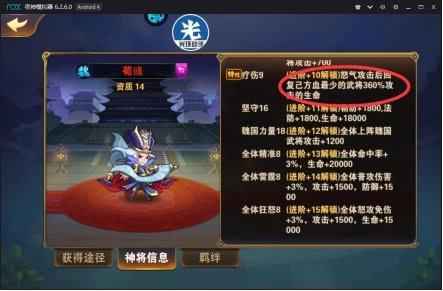 极限文鸯的好处就只有一个,除了神兵和宝物之外,其余的都可以和孙策公用。极限文鸯打极限孙策是比较好打的,但是过图却和孙策差距过大,所以也有部分玩家共养这2个武将,如果主刷图就以孙策为中心升级,升阶,如果PVP以文鸯为主力升。依靠进阶6的技能,甚至和赵云对A都不怕,此外封怒也是很恶心的一个技能。
