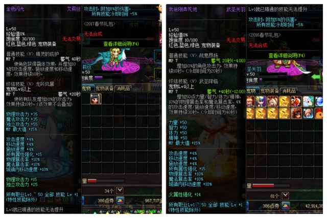 与前年的dnf最强宠物关羽和去年的神宠艾莉丝相比较,少了35的双攻和55独立,多了110点四维(奶爸奶妈重充钱警告)