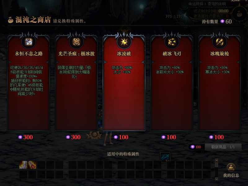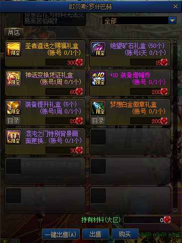 绝望矿石/神话转换/装备提升礼盒全部兑换的情况下,每周剩余60个材料