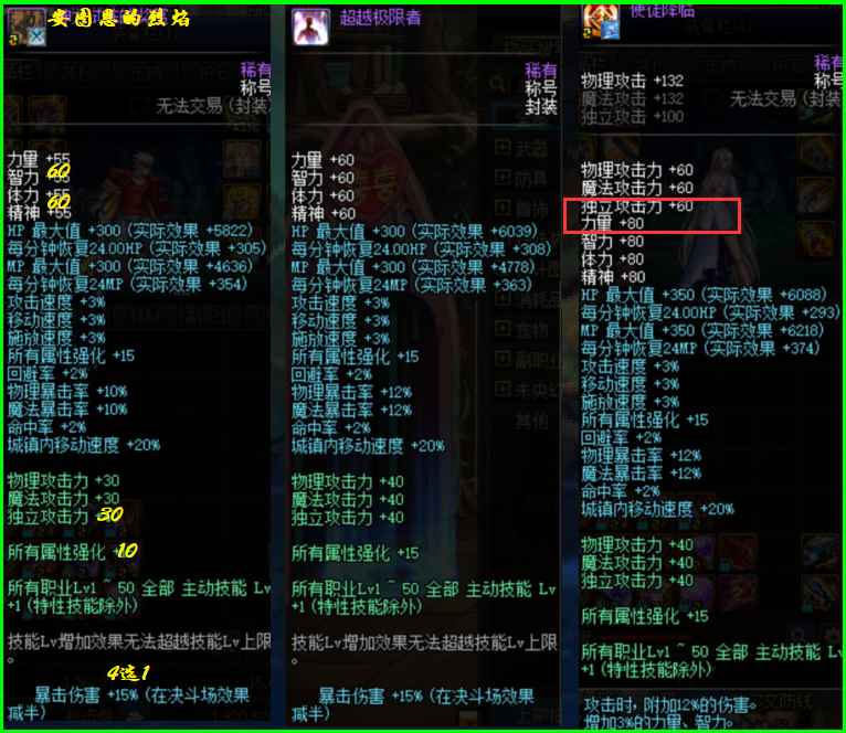 【19年国庆称号】:60四维,15属强,15%爆伤,20%城镇移速,攻击时触发10属强,附魔春节宝珠。