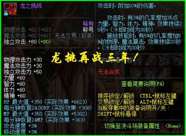 【20年春节称号】:80四维,60三攻,15属强,20%城镇移速,攻击时触发35力智,附魔春节宝珠。
