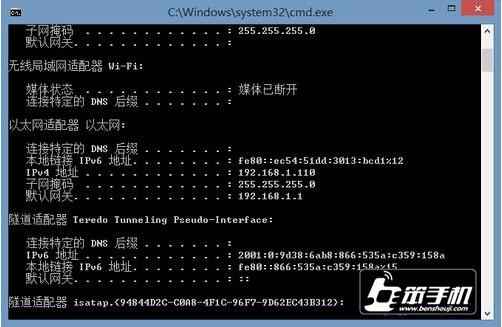 然后在输入 ipconfig 单机回车 。其中的 ipv4 后面的地址就是你电脑的ip。记住它!