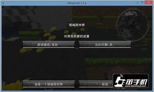 接下来就可以进入mc,进单人游戏,创建个你们想玩的模式或者存档。。进入游戏画面后按ESC到菜单,点”对局域网开放“,——“创建一个局域网世界”。