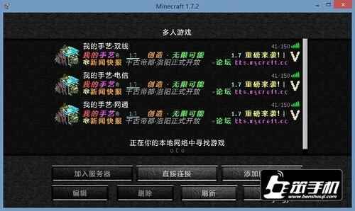 以上都做完之后,让你的小伙伴把mc打开(一定要是同一个版本),在主页上选择多人游戏。