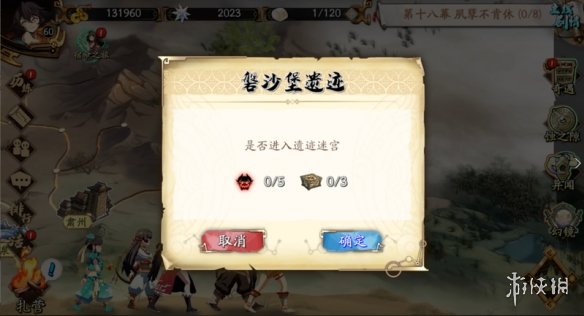 当少侠主线进行到【磐沙堡】这个路点,此处主线剧情完成后,“磐沙堡遗迹”这个支线就会出现,点击下图红圈位置即可进入。