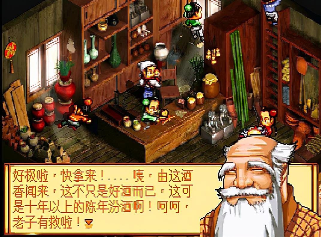 打完第六幕后,在城里先和客栈左边拿着酒杯的人对话,然后下去和酒鬼多次对话,得知上面箱子有好酒,再去箱子那里调查,就可以得到一瓶陈年汾酒。