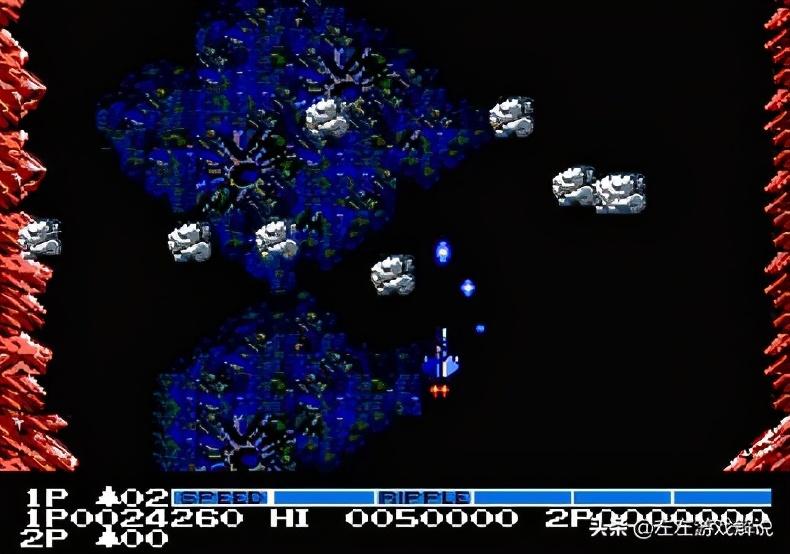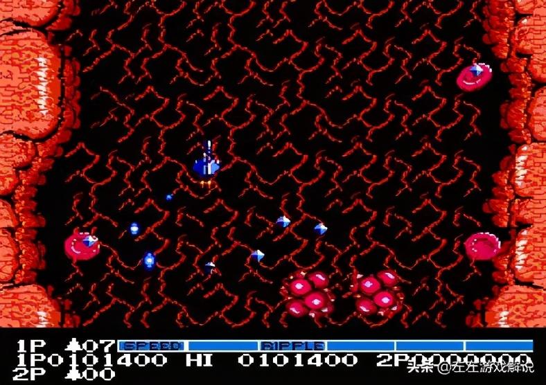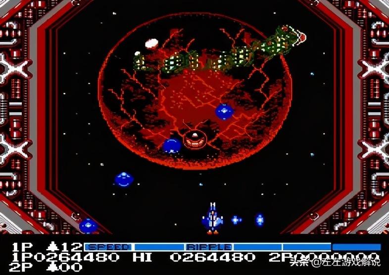 大家好,首先一开始在文前,要先来提一件事:宇宙巡航舰?沙罗曼蛇?傻傻分不清,由于FC版的沙罗曼蛇,採用了宇宙巡航舰的胶囊与强化量表的自机强化模式,当时的游戏店家、攻略本、游戏杂志发行商也没搞清楚状,导致自宇宙巡航舰2之后的系列作,通通都被叫成沙罗曼蛇了,后来的疯狂大射击系列,也被叫沙『锅』曼蛇,其实光看原文名称也知道两者不一样,宇宙巡航舰的原文是Gradius,沙罗曼蛇的原文是Salamander,且在2000年左右,好像有一波正名活动,这时才杂志翻译才正式把宇宙巡航舰与沙罗曼蛇抽离开来。