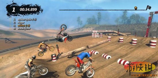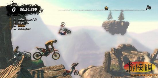 和前作《特技摩托HD》相比,这次最大的进化就是多人游戏的加入了。如果说单人是寻找赛道走法来解谜的话,多人模式完全就是考验谁的技术临场发挥的更好。毕竟这里你不会有机会重试,单人模式下你可以反复挑战,最终拿到好成绩,而多人模式中,你只能保证临场发挥出色、挂的少,才能拿到比别人更高的分——记得不是跑第一就能拿到高分的哟!