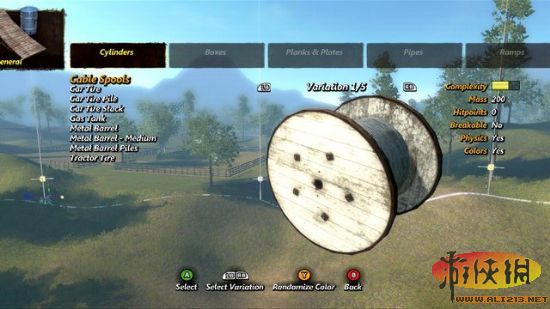 不过我们一定要提到的亮点是——关卡自定义。单人游戏终究会有登峰造极的那天,多人游戏的赛道数量有限也会腻味——所以自己来制作关卡,自娱自乐(或者是拉上别人一起来享受)吧!但凡支持自定义关卡的游戏都有着几乎无限的重复游戏价值。本作中由于加入了室外场景,所以玩家们也不用再单调的把木板之类的东西拼来拼去了。从地形到植物,大量丰富的素材可以利用,而且还有很多奇形怪状的道具,包括炸弹、流水等可以利用,不怕素材不够,只怕你的创意不够。任何天马行空的想象力都使劲儿发挥出来吧!记住——这不是一款竞速游戏,赛道不需要真实度。作为解谜游戏,你只要尽可能弄的越奇葩越好!当然原则还是——车能开的过去……