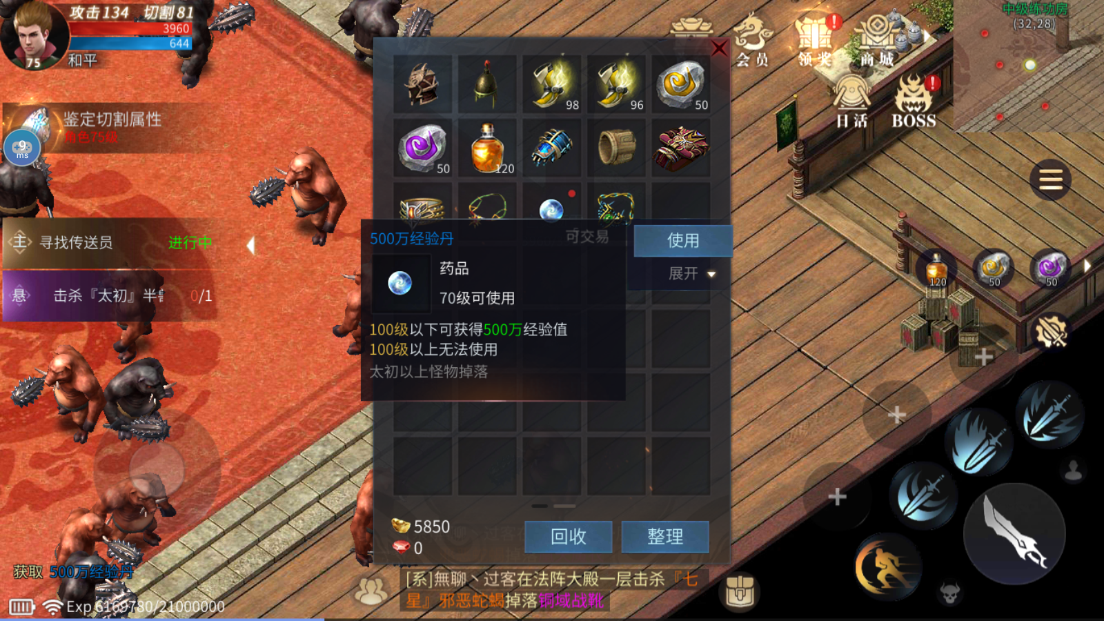 3D手游傲世龙城,相信大家都有所了解,今天小编就给大家带来,傲世龙城手游的速升攻略,前期的升级还是很重要的,因为涉及到一个抢榜,所以除了正常刷怪之外,有一个非常重要的升级途径就是经验丹,傲视龙城的经验丹是可以选择花费钻石来获取多倍经验的,一定要选择最高的五倍获取经验,这样可以一次性升很多级。