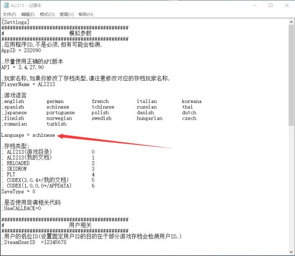 在游戏根目录下找到位于“BinariesWin64”文件夹下的“ALI213”,在“Language = schinese”一栏将“schinese”替换成“tchinese”即可改成繁体中文,其他语言同理。