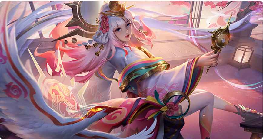 这次的系列皮肤采用了日式神话三大神的元素概念,即天照、月读、须佐之男。而今天爆料的娜可露露新皮肤就是太阳神女的概念,娜可露露-前尘镜。
