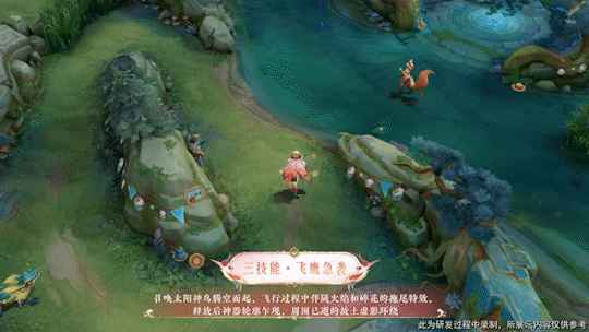 这次的技能特效主要围绕太阳神鸟来做,其中最大的亮点应该就是大招了。娜可露露压迫感最强的技能也就是她的大招了,这次改化鸟为站在鸟背上,压迫力更足,同时也富有创意。